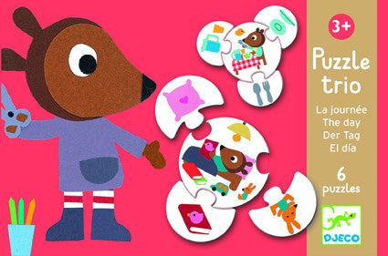 Puzzles to help the child with their very first learning experiences, made from sturdy cardboard packaged in attractively colored boxes. 10 puzzles / 20 pieces. Box approx. 18 x 12 x 6 cm.
