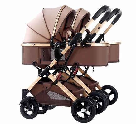 • Vintage alongside dual stroller with wear resistant premium quality golden aluminum alloy and also big burgundy cover.