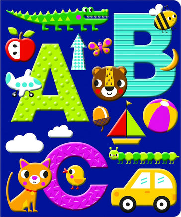 This fun book offers a fun introduction to the alphabet for young children. Each busy page is packed with ABC things for little ones to find keeping them entertained for hours. There's a sweet rhyme to read plus a soft silicone cover to create a tactile experience for children