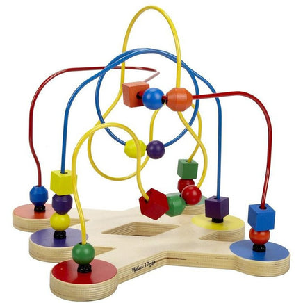 Multi-shaped and brightly colored beads swoop and slide along roller-coaster wires to encourage color and shape recognition and fine motor development. With a sturdy wooden base, this eye-catching activity will keep a little one busy for a long while!