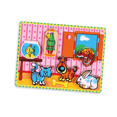 These chunky puzzles are hand-made. Each block is 15mm thick, easy for small fingers to grasp. Each puzzle has a picture underneath for children to match.