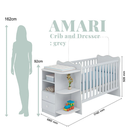 - High Safety Standards: Made with quality, non-toxic materials, the Amari Crib and Dresser Combo meets all safety standards.