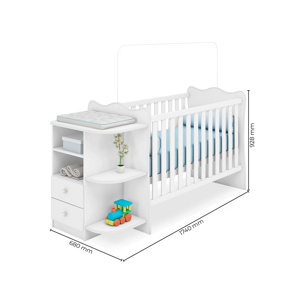 - Generous Storage: The integrated dresser includes two drawers, and shelves perfect for organizing baby clothes, diapers, and other essentials, keeping your nursery neat and tidy.